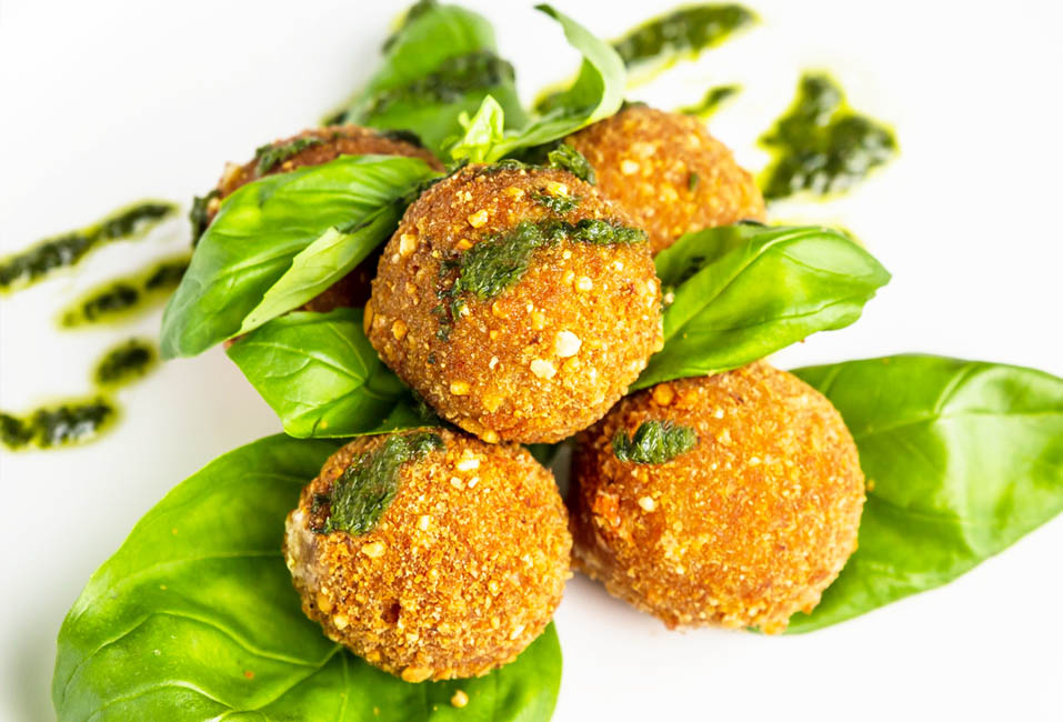 - Podemos servir las croquetas acompañadas de un cuenco con salsa Pesto para quien quiera más.